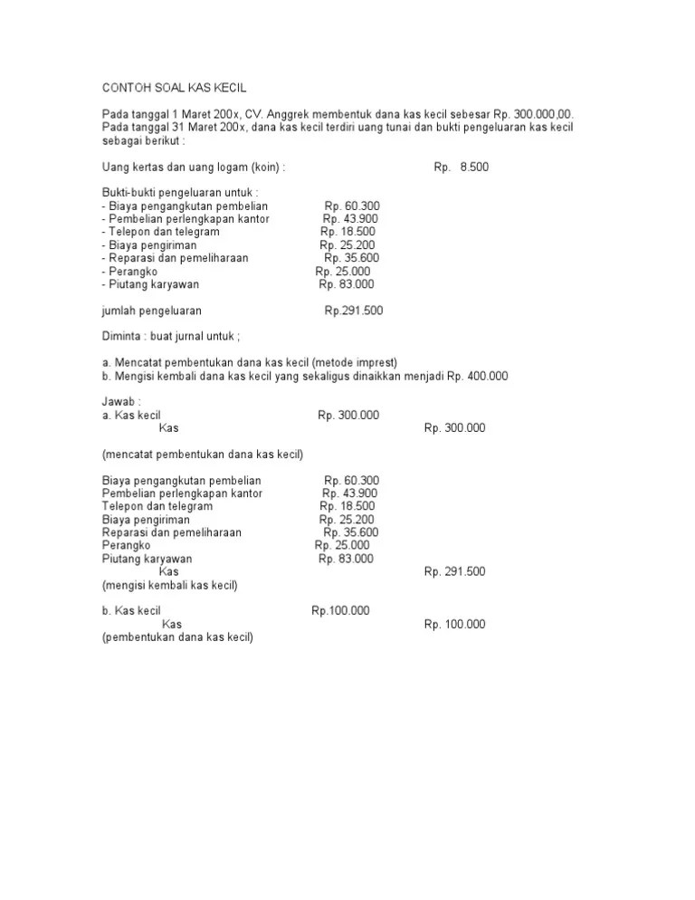 Soal Kas Kecil - Contoh Soal Dana Kas Kecil Pdf / 1.aktiva di bawah ini yang tidak termasuk dalam kas adalah …